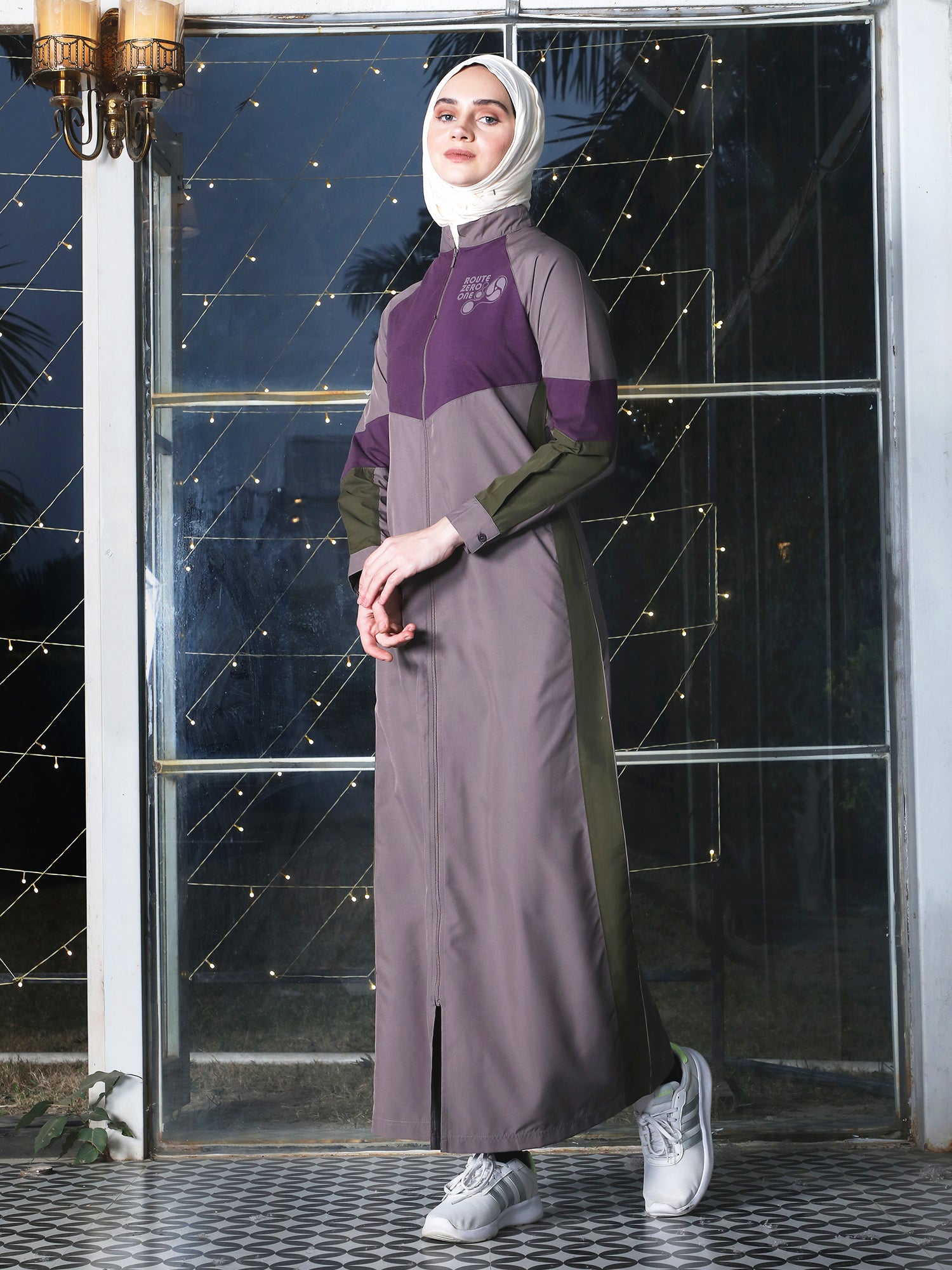 Step into effortless style and comfort with our Urban Grace Jilbab. Designed with a striking mix of brown and purple, this piece features a bold HD chest print and modern band collar for a sleek, contemporary look. The full front zipper, side pockets, and shirt-style cuffs combine practicality with flair. Its soft hand feel, and relaxed regular fit make it perfect for everyday wear. Make a statement—without saying a word.